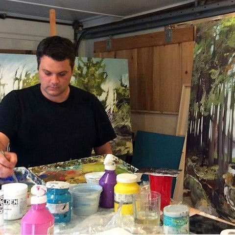 Ontario artist, Shane Norrie, is a well-established clay artist, and also a widely exhibited painter. His paintings frequently echo the signature organic, textural aesthetic of his ceramics. Ever evolving and experimenting, often his subject matter references local surroundings and familiar landscapes, while moving into the realm of abstraction.